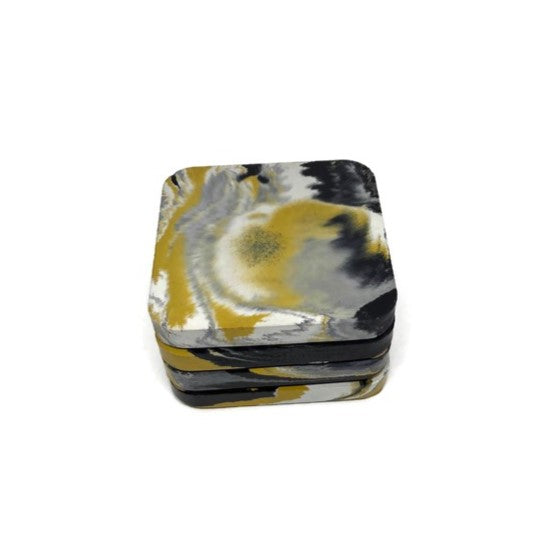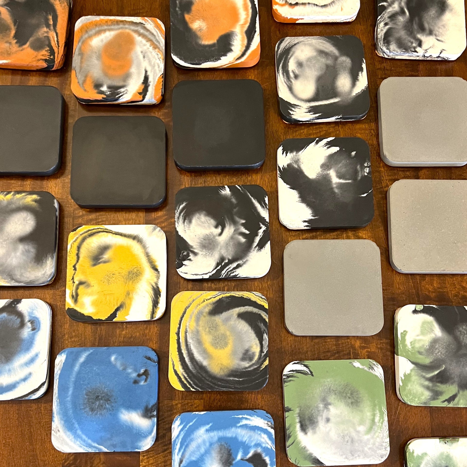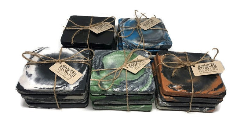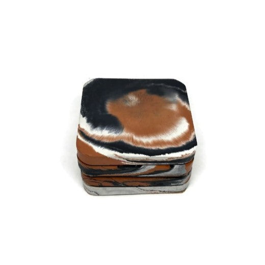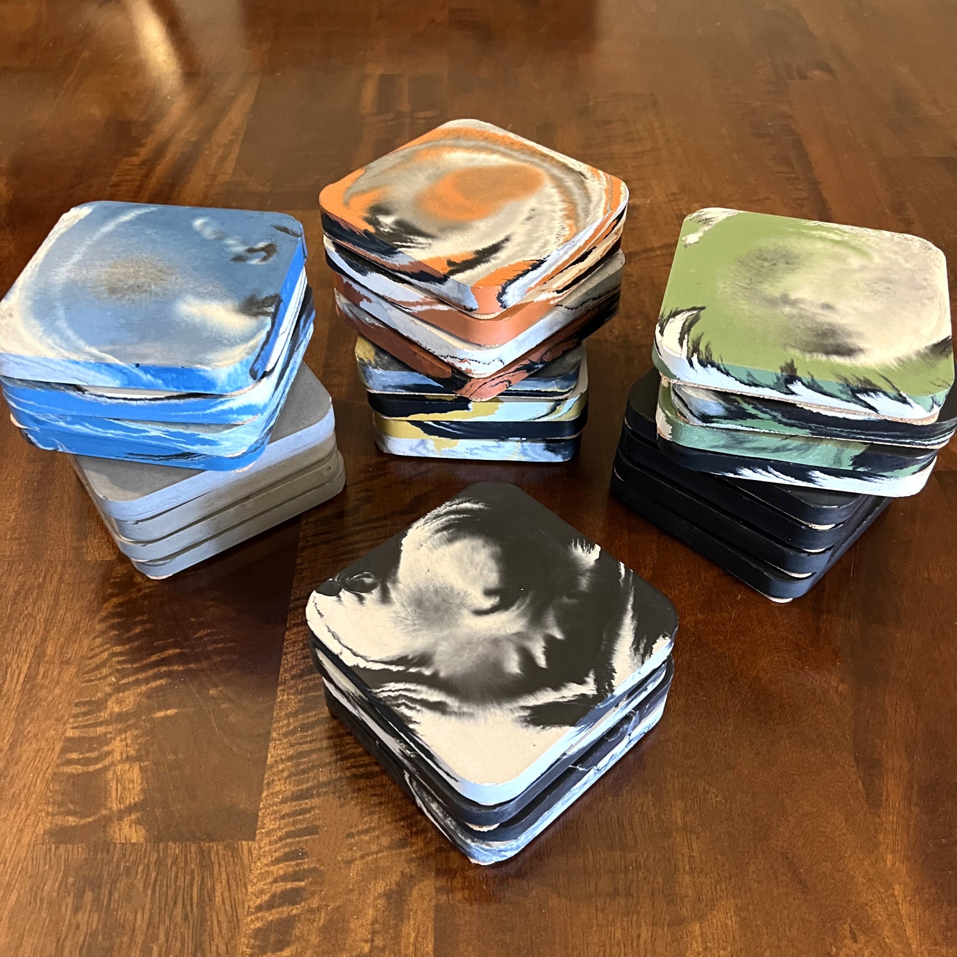 Each piece is hand-dyed and individually poured in our small garage studio on the Jersey Shore. While we strive for consistency, the organic flow of concrete makes every coaster one-of-a-kind, with subtle variations, air pockets, and surface textures. This mold is our exclusive design, created in-house.