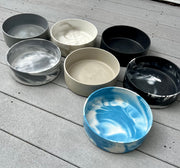 Each piece is hand-dyed and individually poured in our small garage studio on the Jersey Shore. The organic flow of concrete makes every bowl one-of-a-kind, featuring unique air pockets, surface textures, and color variations. This exclusive mold was designed in-house.