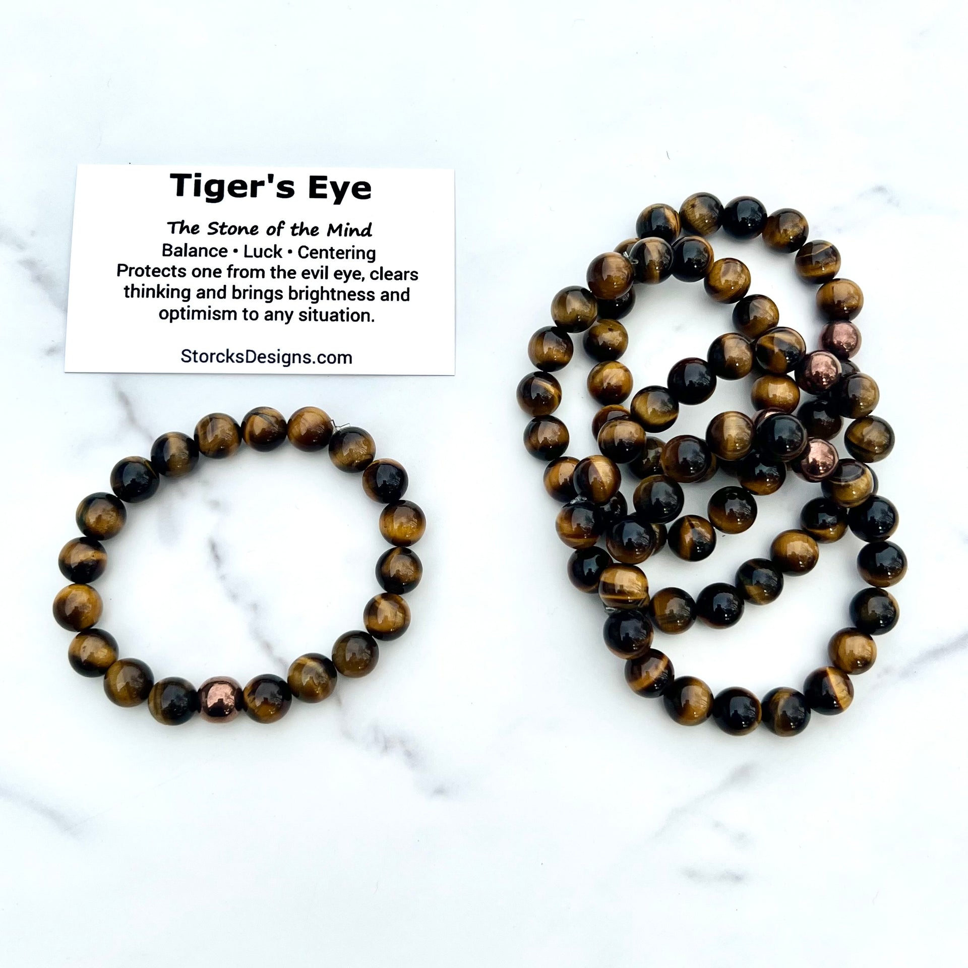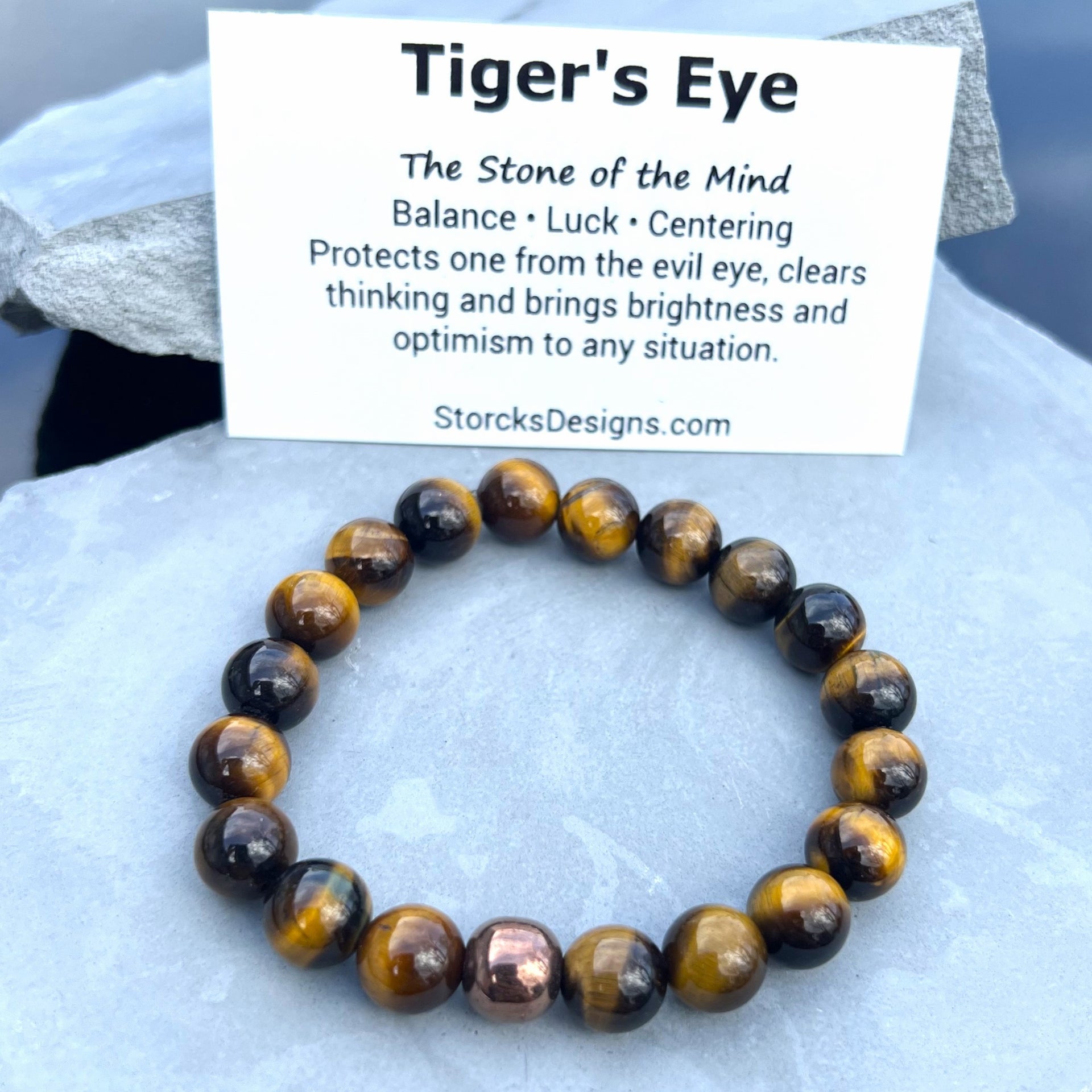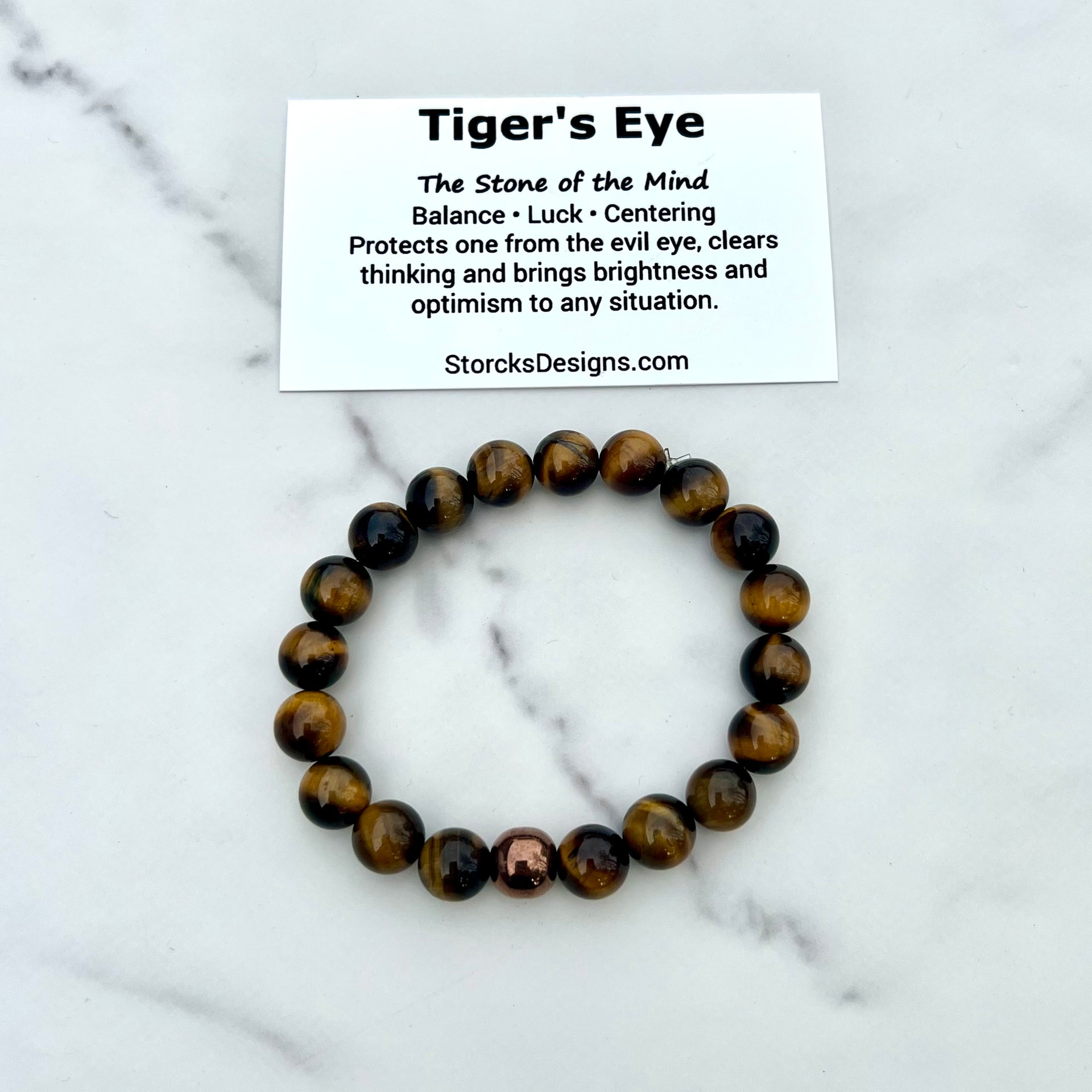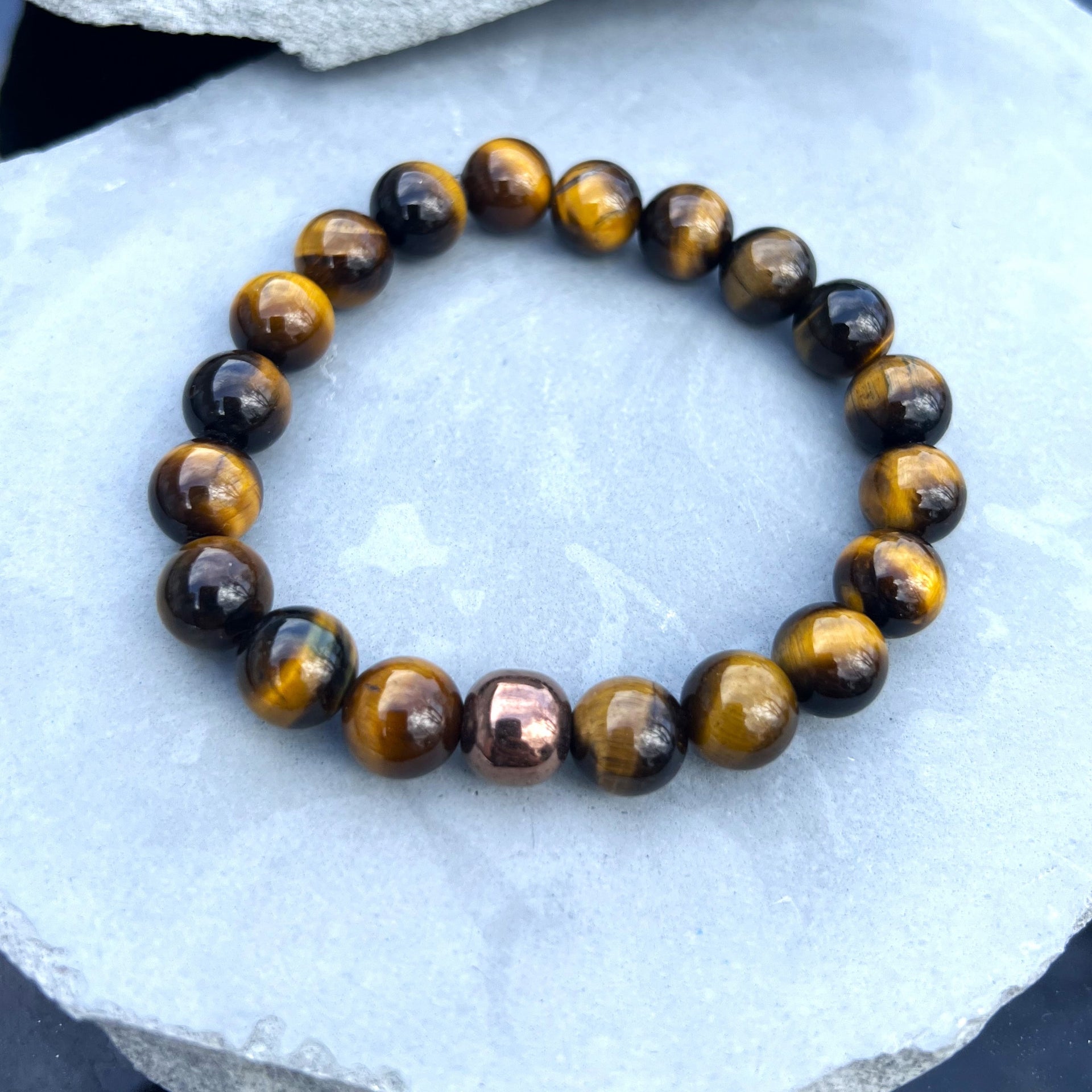 Introducing our Tiger's Eye Beaded Bracelet, a timeless piece crafted with 10mm beads that exude classic elegance. Each bead is meticulously selected to showcase the natural beauty of Tiger's Eye, accented with a single copper bead for added flair.