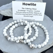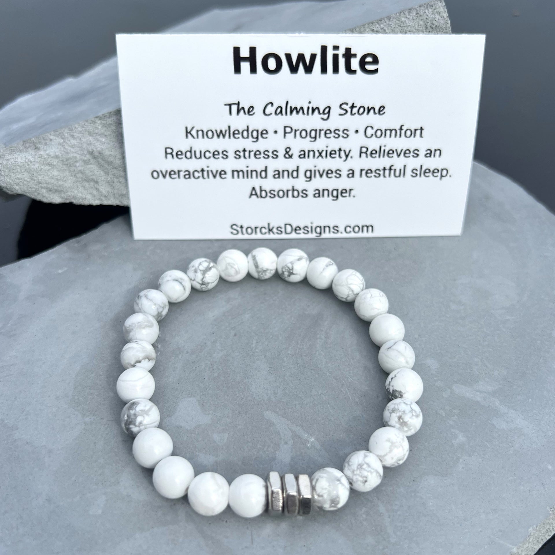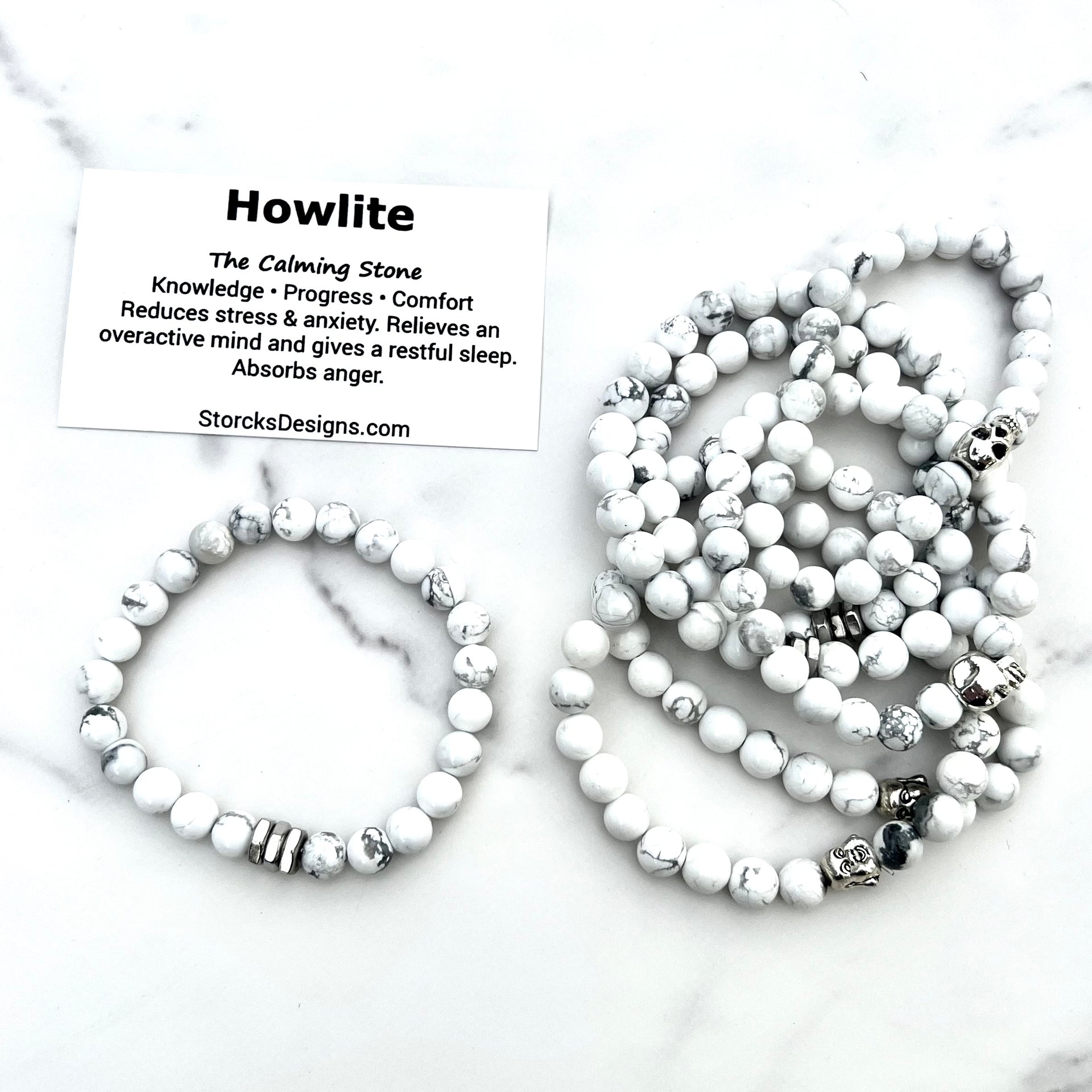 Known as “The Calming Stone,” Howlite is believed to ease anxiety, reduce tension, and encourage restful clarity. Ethically sourced from California and Canada, each 10mm bead carries a sense of peace and personal growth, grounding you through life’s daily rhythms.