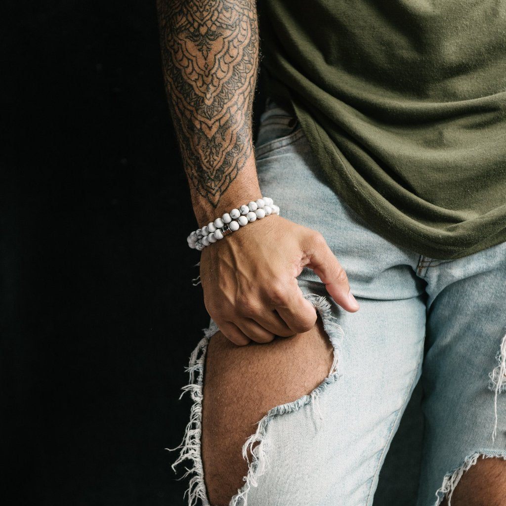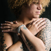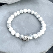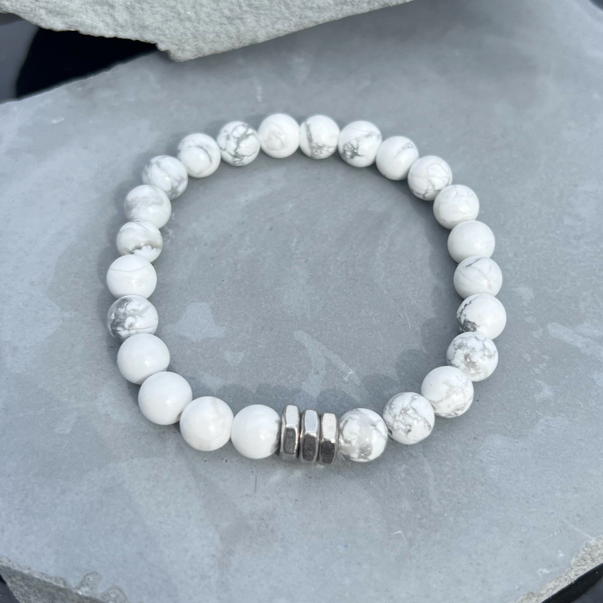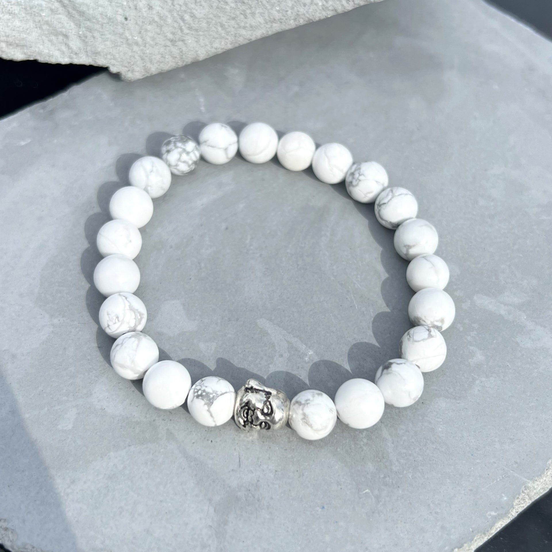 Hand-strung in small batches, our Howlite Beaded Bracelet blends crisp elegance with calming energy—making it a go-to piece for everyday wear or seasonal styling. Its clean white tones, veined with soft grey striations, evoke a sense of effortless serenity and pair beautifully with sun-kissed skin in the warmer months.