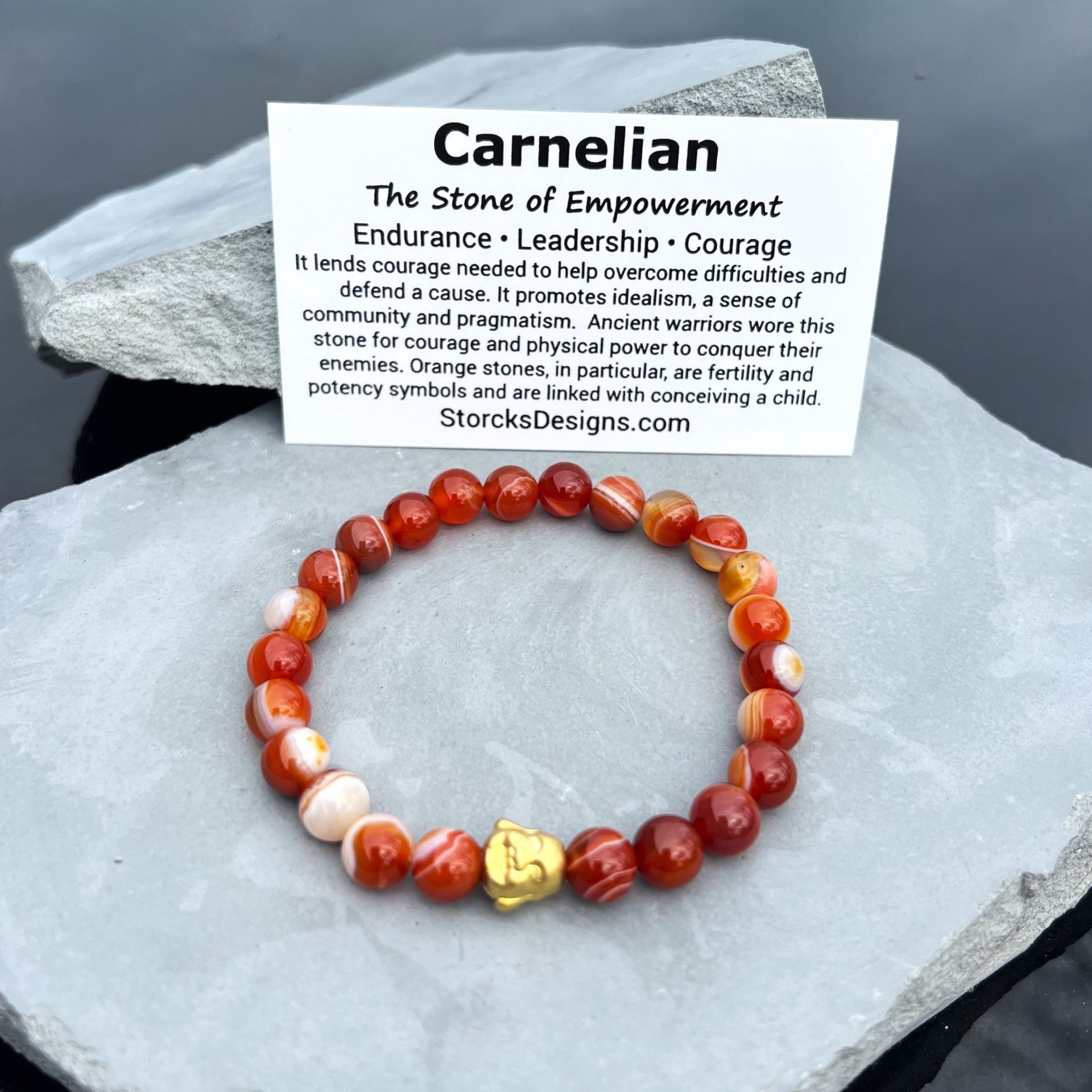 Known as "The Stone of Empowerment," Carnelian is celebrated for enhancing endurance, leadership, and courage. Sourced from Brazil, Egypt, and Uruguay, it was once worn by ancient warriors for strength in battle and is still revered today for its connection to bold action and personal growth. Its vibrant hue also symbolizes fertility and the spark of new beginnings.