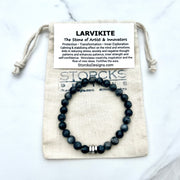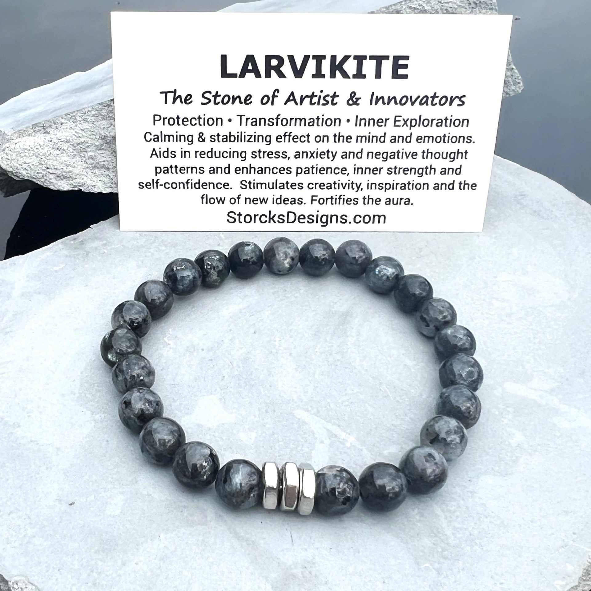 Often called “The Stone of Artists and Innovators,” Larvikite is known for its grounding, protective energy. Believed to ease stress and quiet the mind, it encourages inner strength, patience, and the flow of fresh ideas. Sourced from Norway, Larvikite carries a long-held tradition of being worn on the left wrist to support growth beyond your comfort zone.