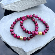 Hand-strung in small batches, our Magenta Tiger’s Eye Beaded Bracelet transforms a classic stone into something bold and unexpected. Expertly dyed in rich magenta tones, this piece radiates vibrant energy and effortless sophistication—perfect for those looking to make a statement while staying grounded in meaning.