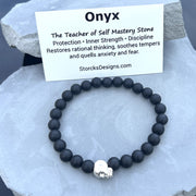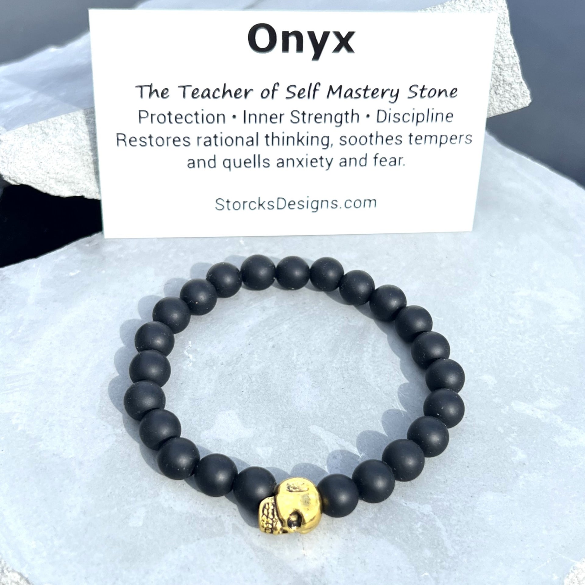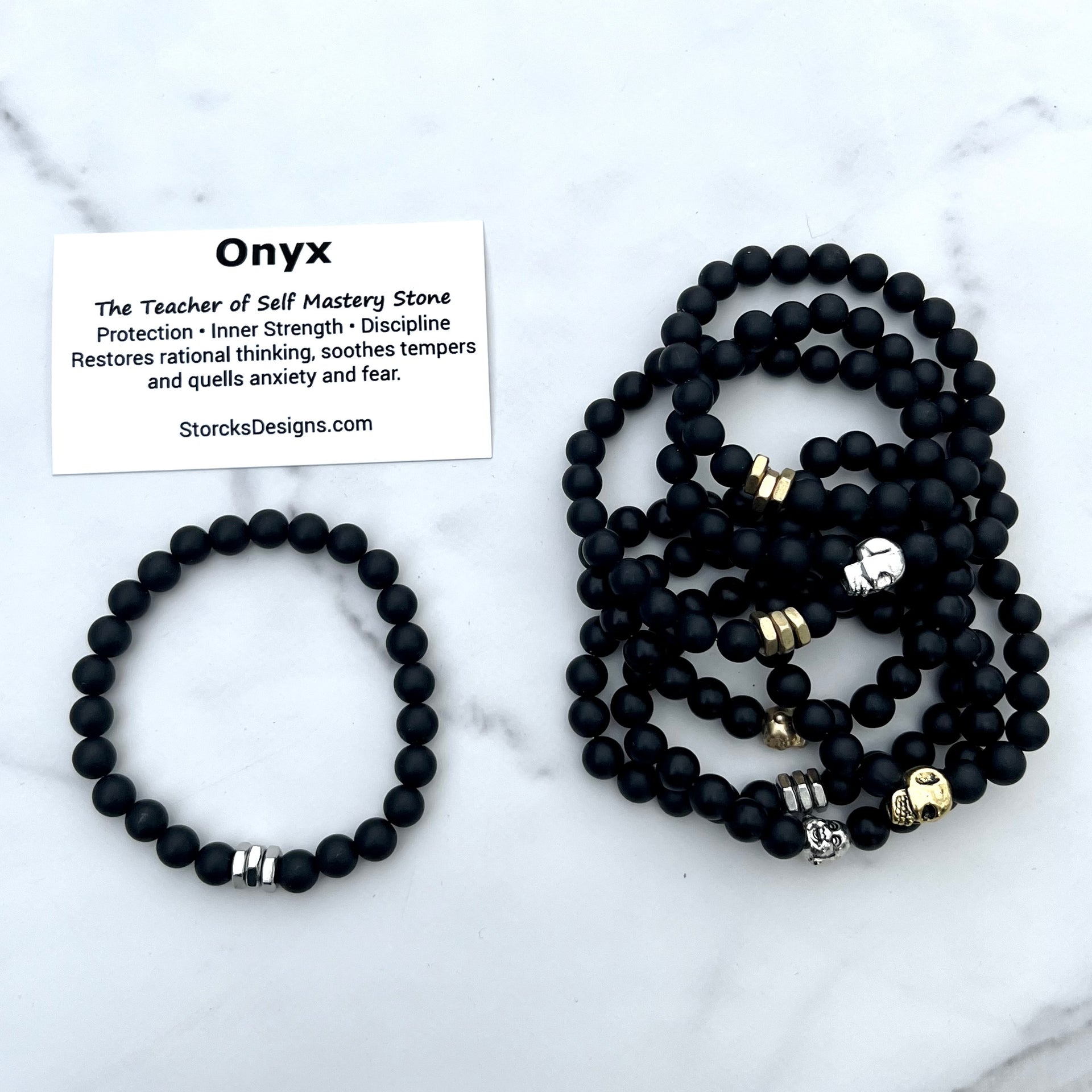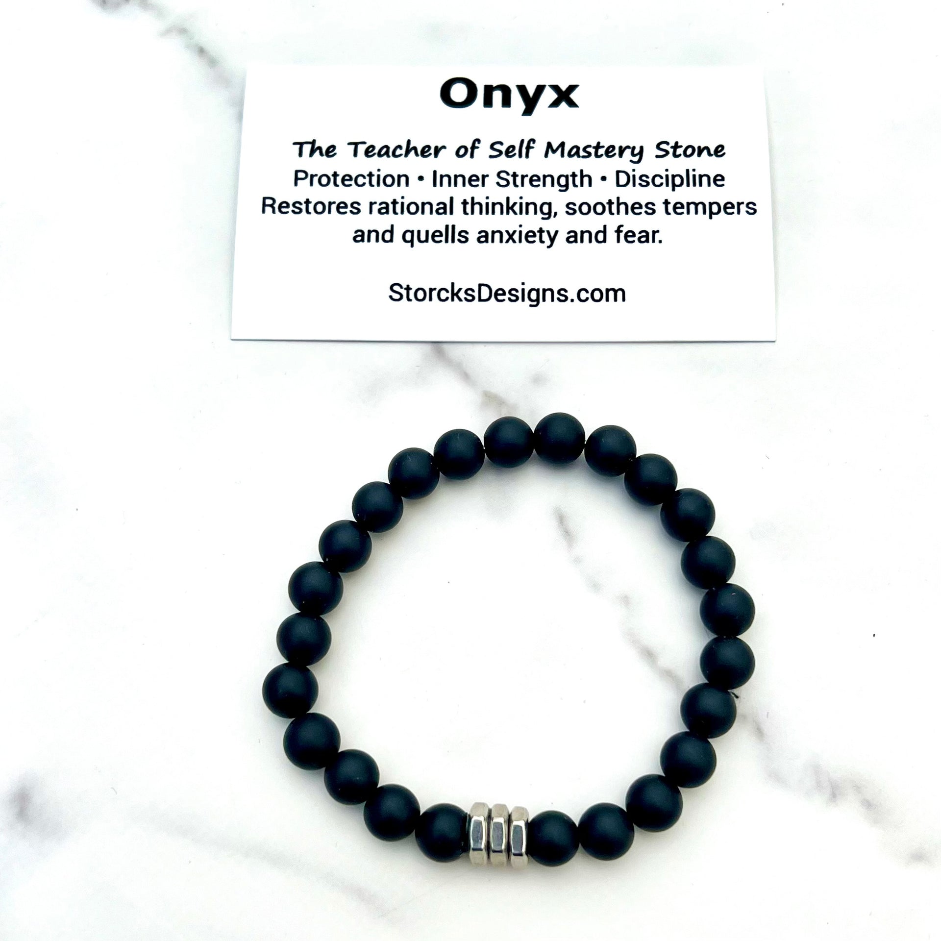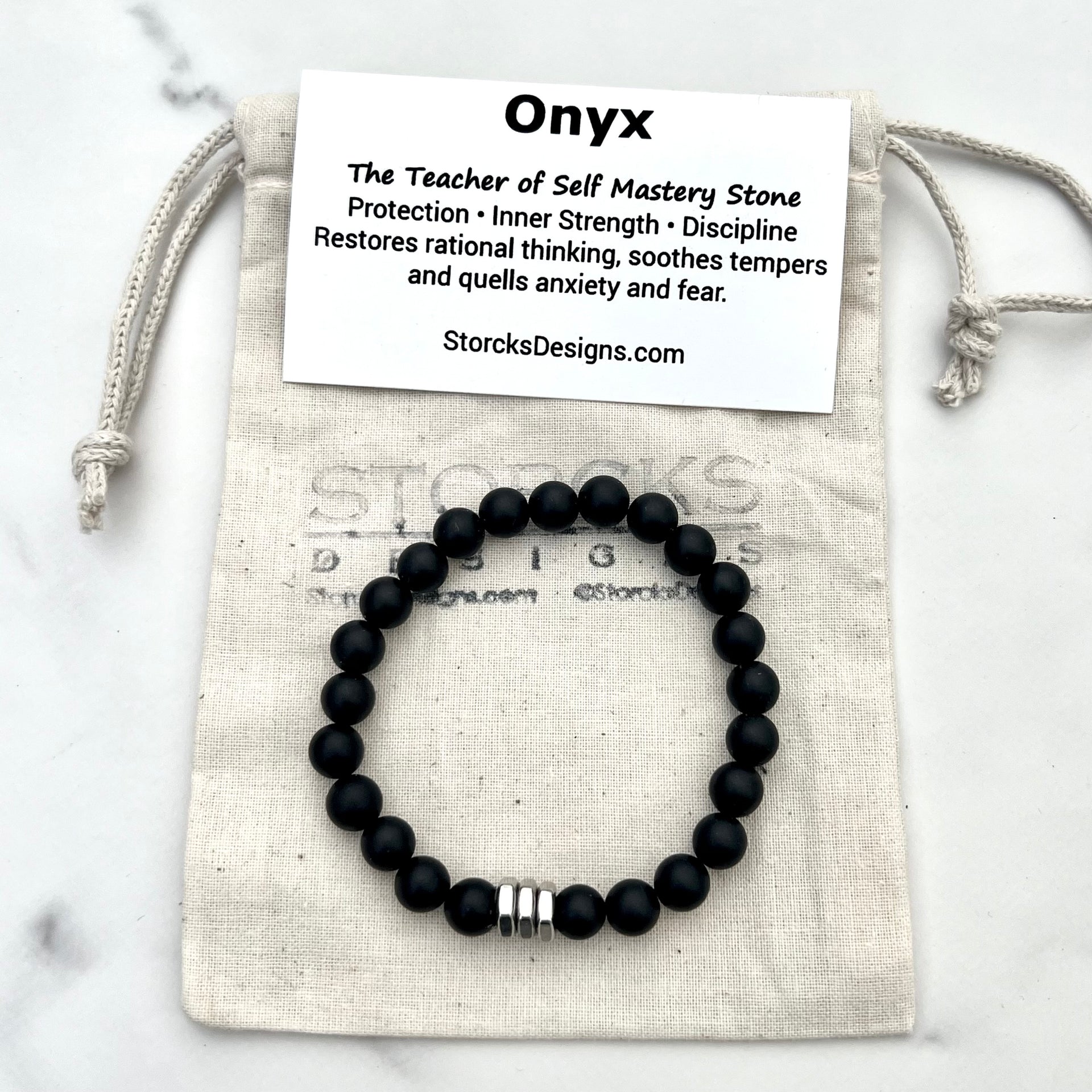 Each bracelet includes a printed card that explains the significance of Onyx, making it more than just jewelry—it’s a symbol of personal growth. Delivered in our signature stamped cotton drawstring bag, it's ready for gift-giving or a personal keepsake.