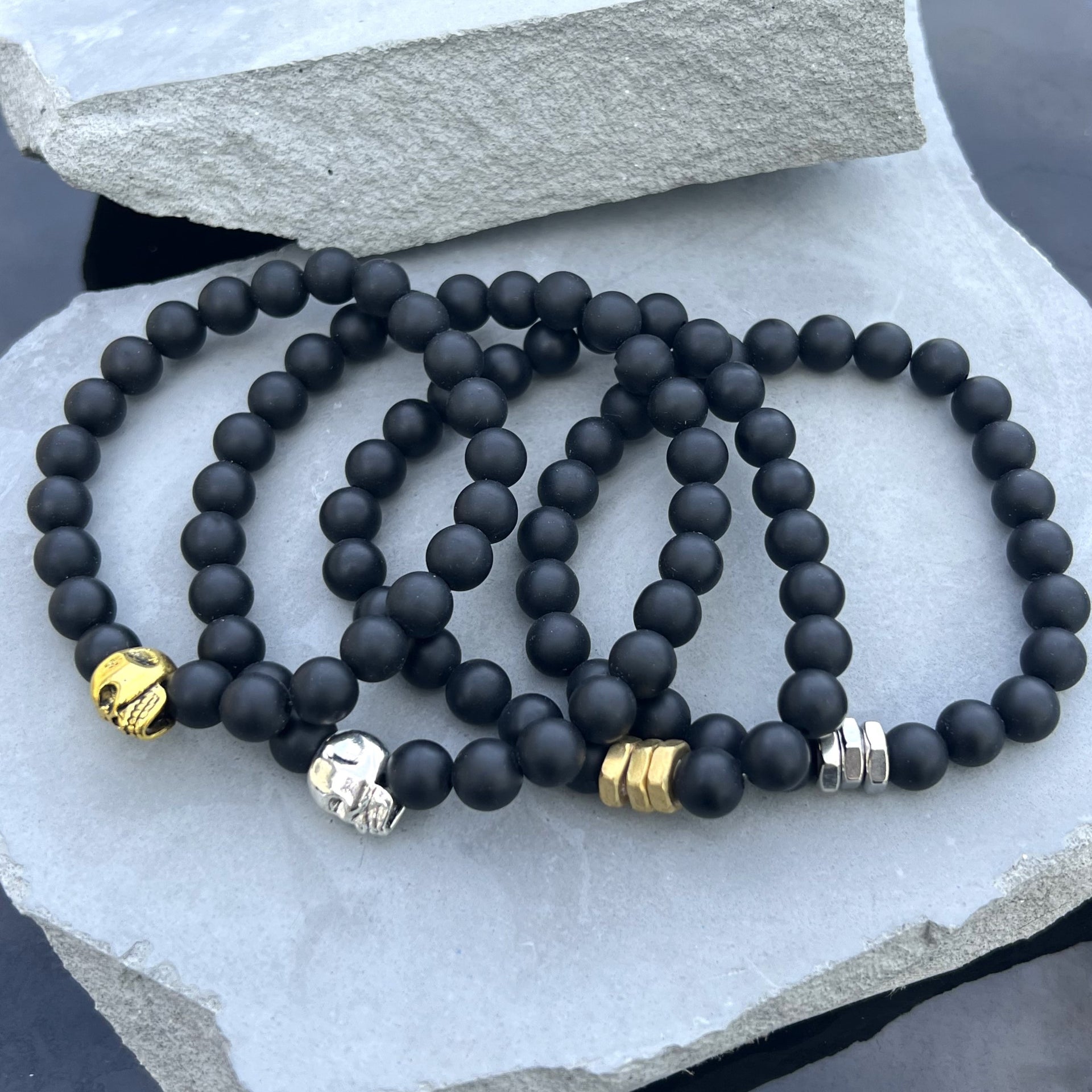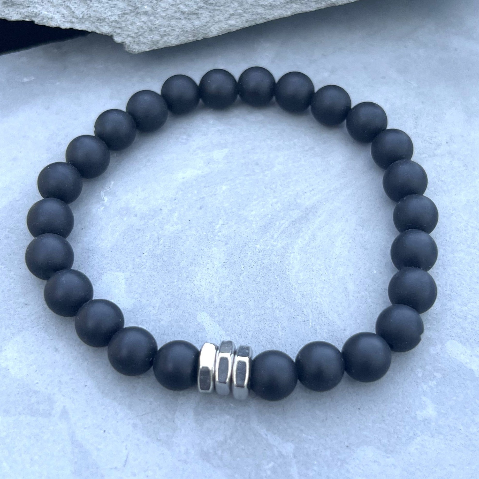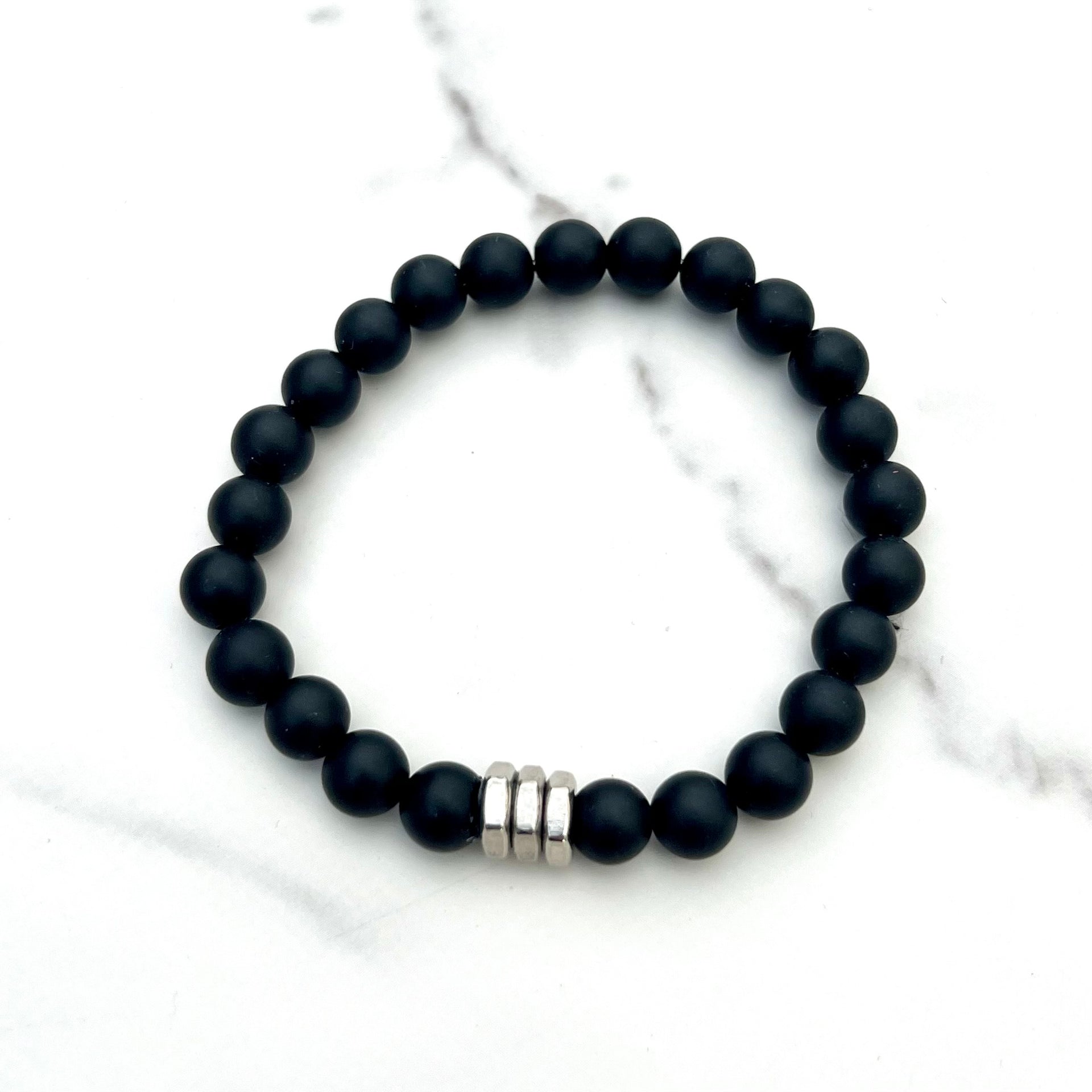 Our Matte Onyx Beaded Bracelet, a timeless and versatile piece designed to complement every wardrobe. With its sleek, understated finish, this bracelet transitions effortlessly from casual to polished looks—making it the perfect unisex accessory to wear solo or stacked with others.