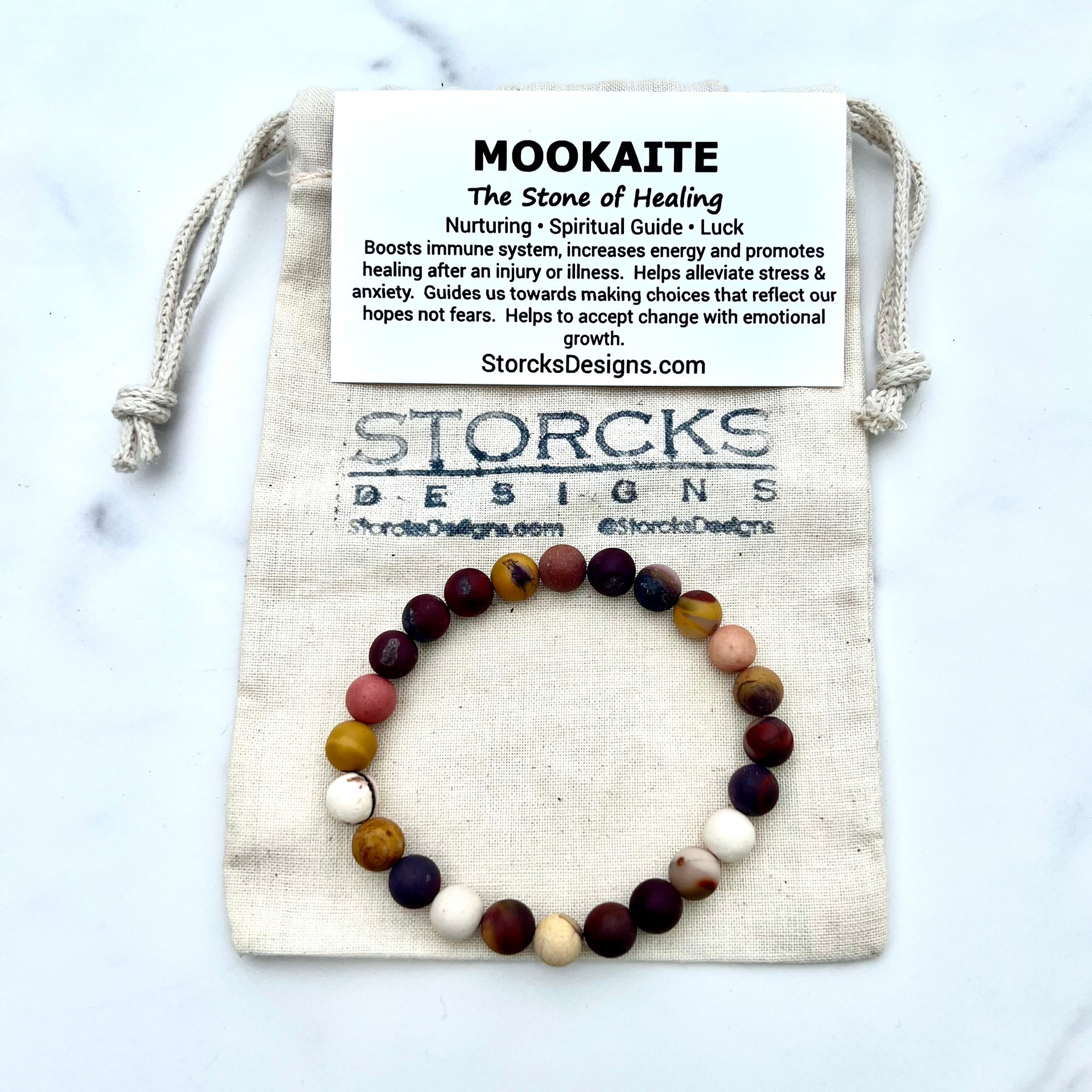 With your purchase, enjoy a card detailing the meaning and origin of Mookaite, enriching your experience with this extraordinary stone. Each bracelet is beautifully packaged in our signature cotton drawstring bag—perfect for gifting or personal indulgence.