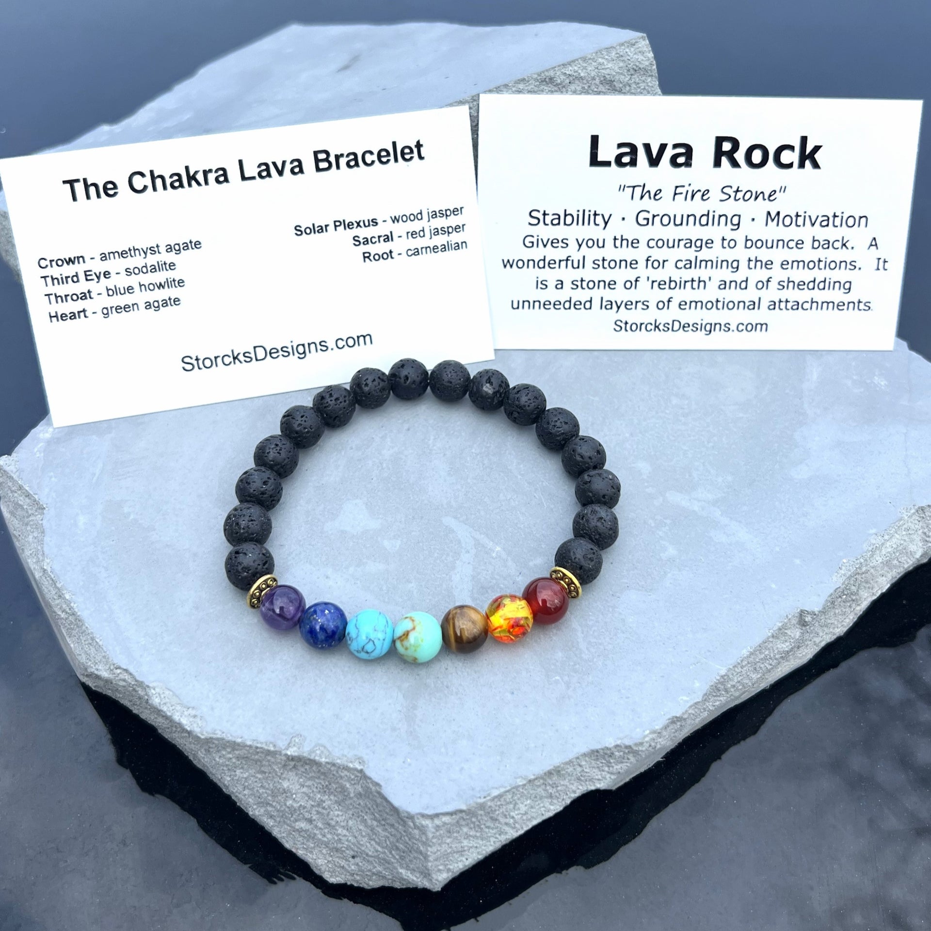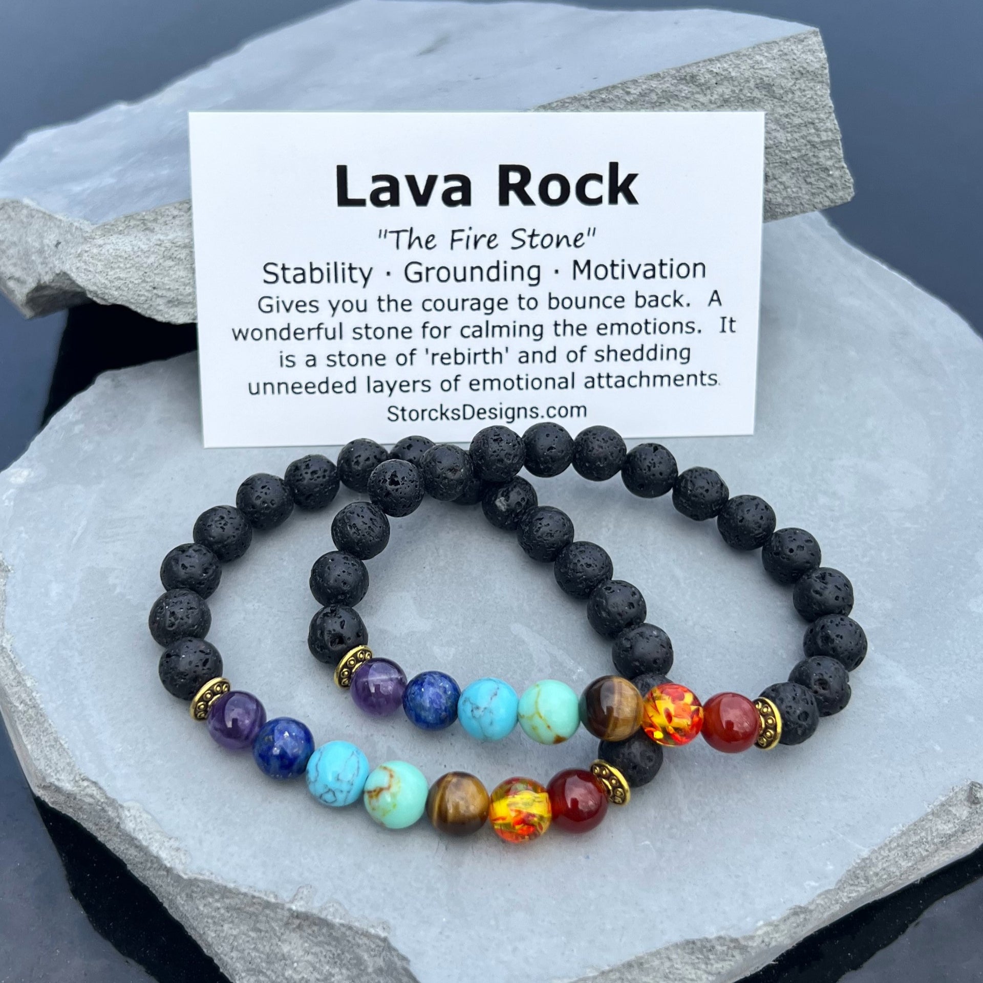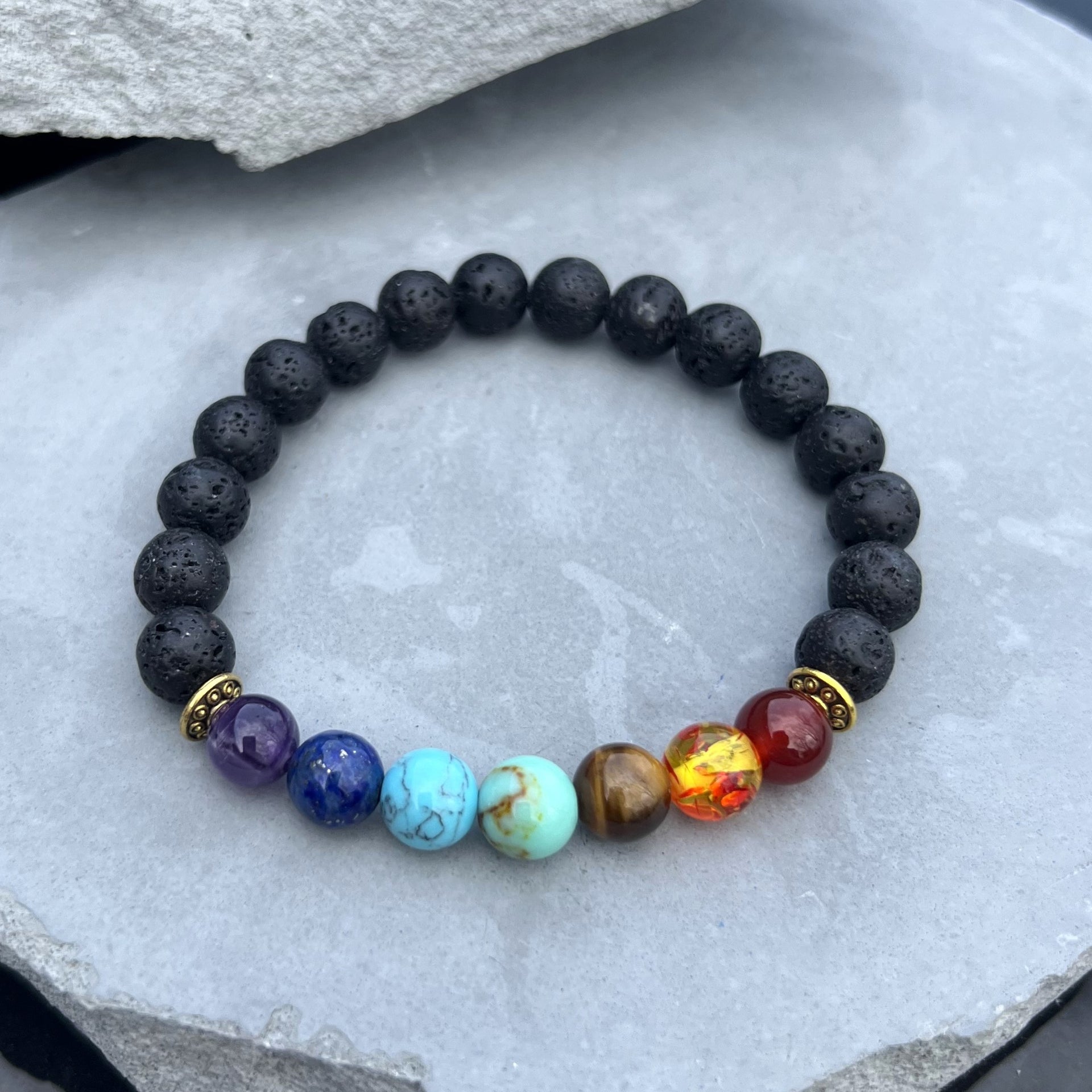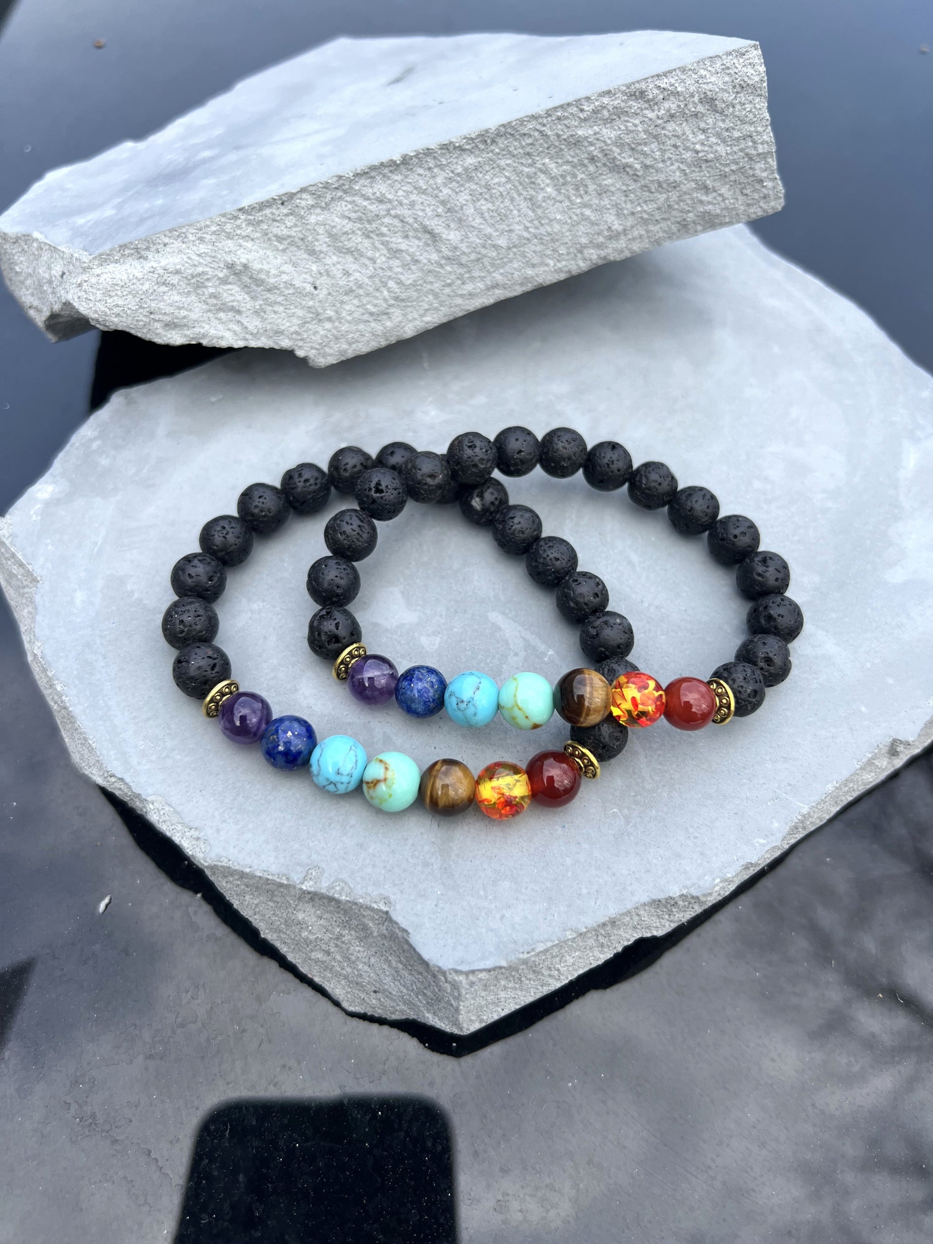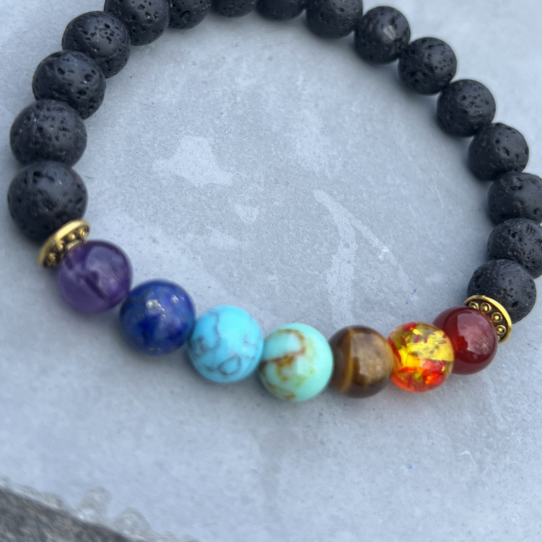 Stone Origin: Chakra stones from various regions; lava rock from New Mexico