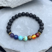 Hand-strung in small batches, our Seven Chakra Lava Rock Bracelet is designed to restore balance, reduce stress, and support emotional well-being—all while serving as a natural essential oil diffuser. Crafted for both men and women, this grounding piece blends meaning, function, and bold style.
