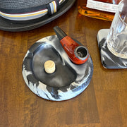 Black and White Marbled Concrete Pipe Ashtray with Cork Knocker