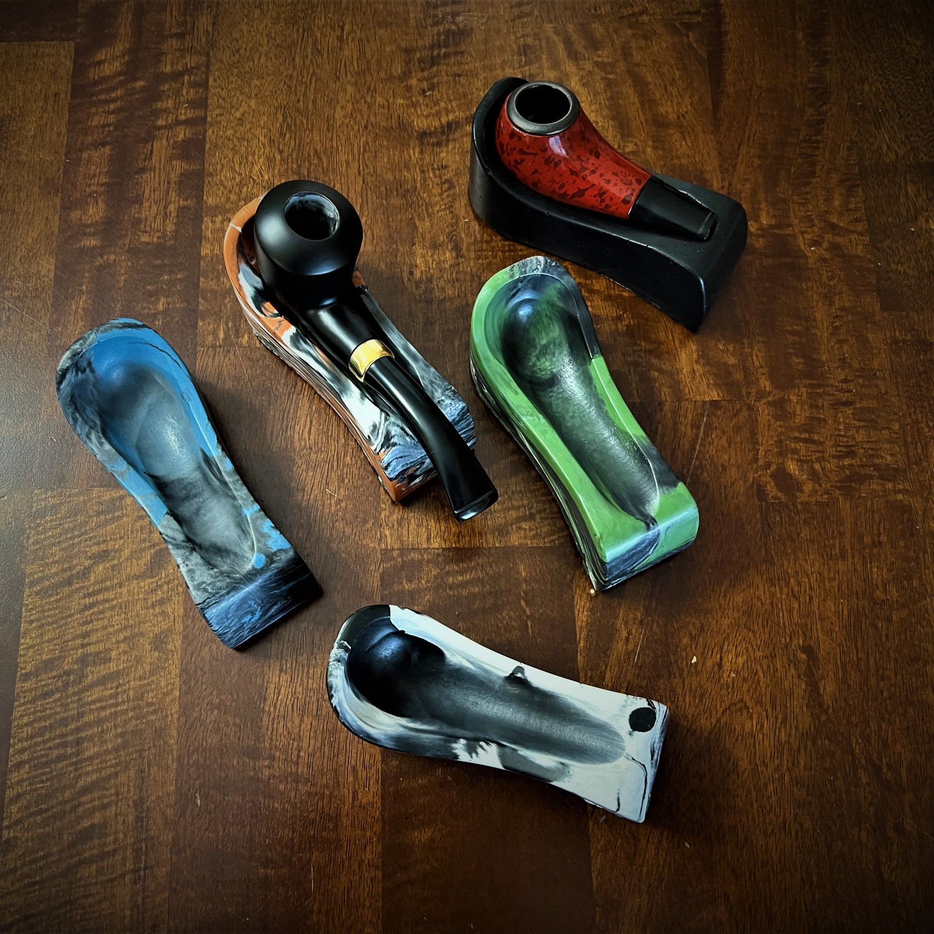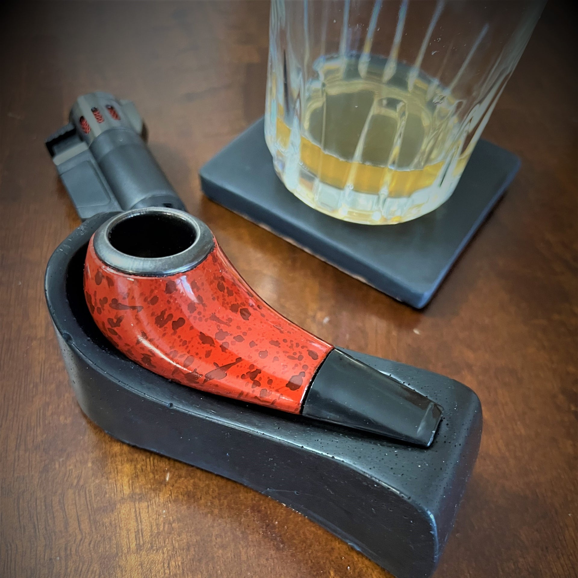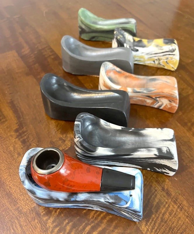 Hand-dyed and poured with love in our Jersey Shore garage, every pipe rest is a one-of-a-kind masterpiece. The natural flow of concrete gives each one its own swirls, air pockets, and little imperfections—adding that extra charm we all love. You won’t find another one quite like it.