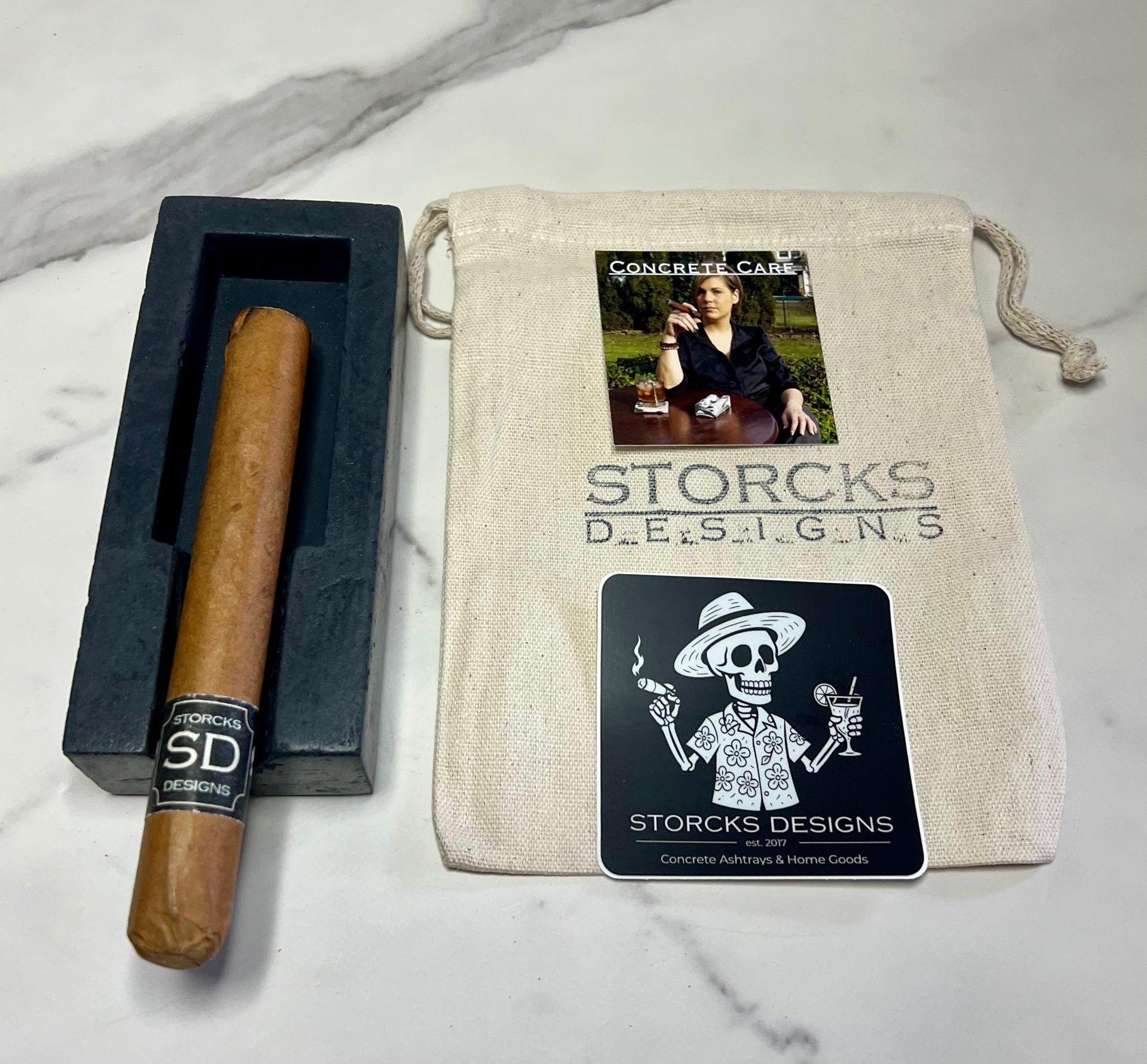 Hand-dyed and poured in small batches at our Jersey Shore workshop, our Single Concrete Cigar Ashtray is where craftsmanship meets character. The organic nature of concrete means each piece is one-of-a-kind, featuring a natural mix of colors, subtle air pockets, and raw texture that gives every ashtray its own personality.