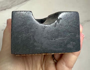 This weighs 1lb 5oz and will come shipped with a belly band and care card within our signature drawstring bag ready for gift giving. The bottom we have added cork to protect your surfaces.