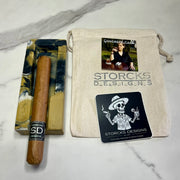 This weighs 1lb 5oz and will come shipped with a belly band and care card within our signature drawstring bag ready for gift giving. The bottom we have added cork to protect your surfaces.