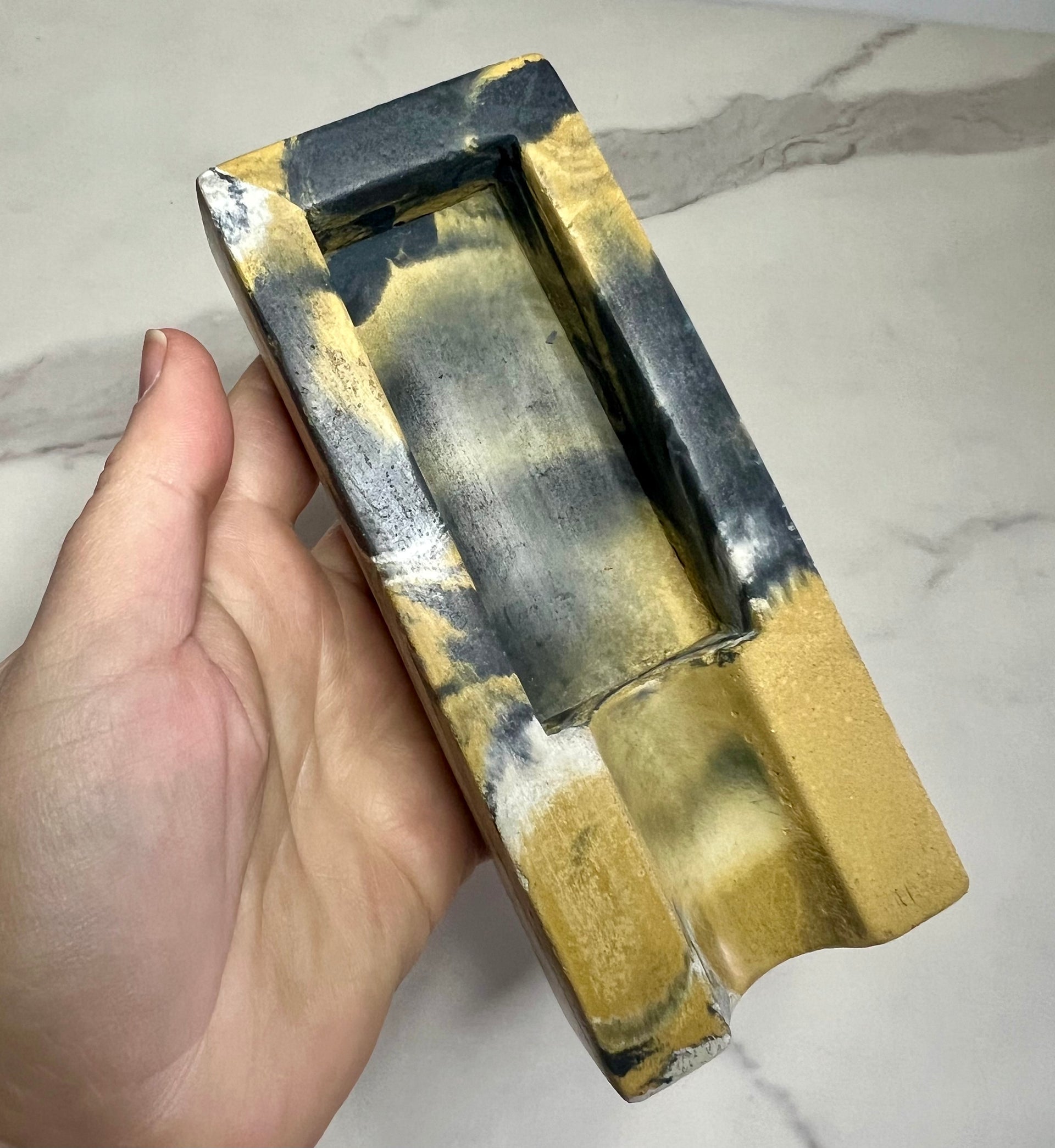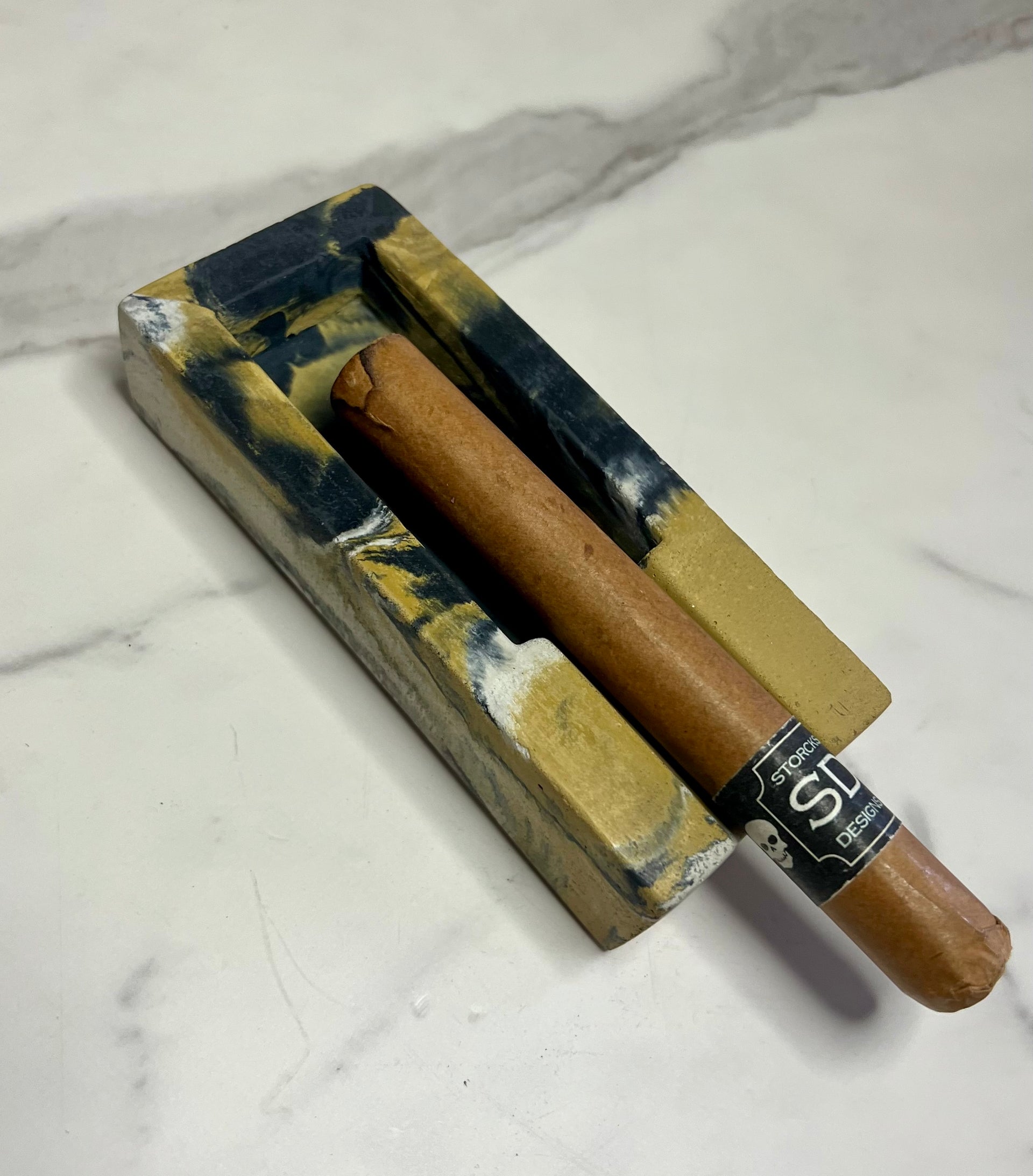 #47 Concrete Single Cigar Ashtray in yellow marbled