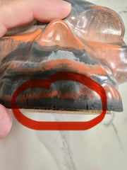 *The imperfection, under the front teeth there are 3 surface cracks. They will not grow as they are just surface cracks...I have circled them in the pictures.