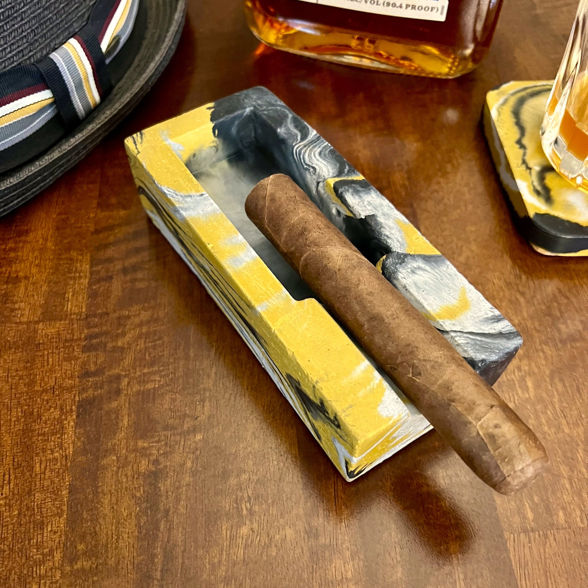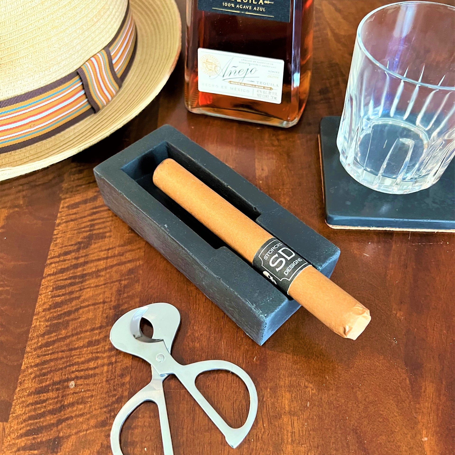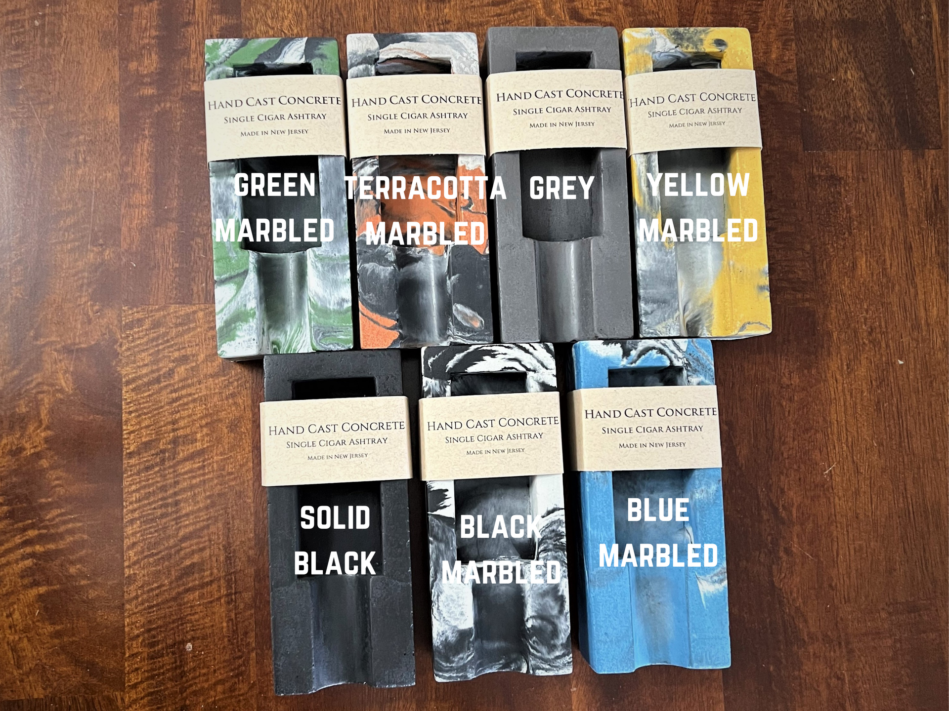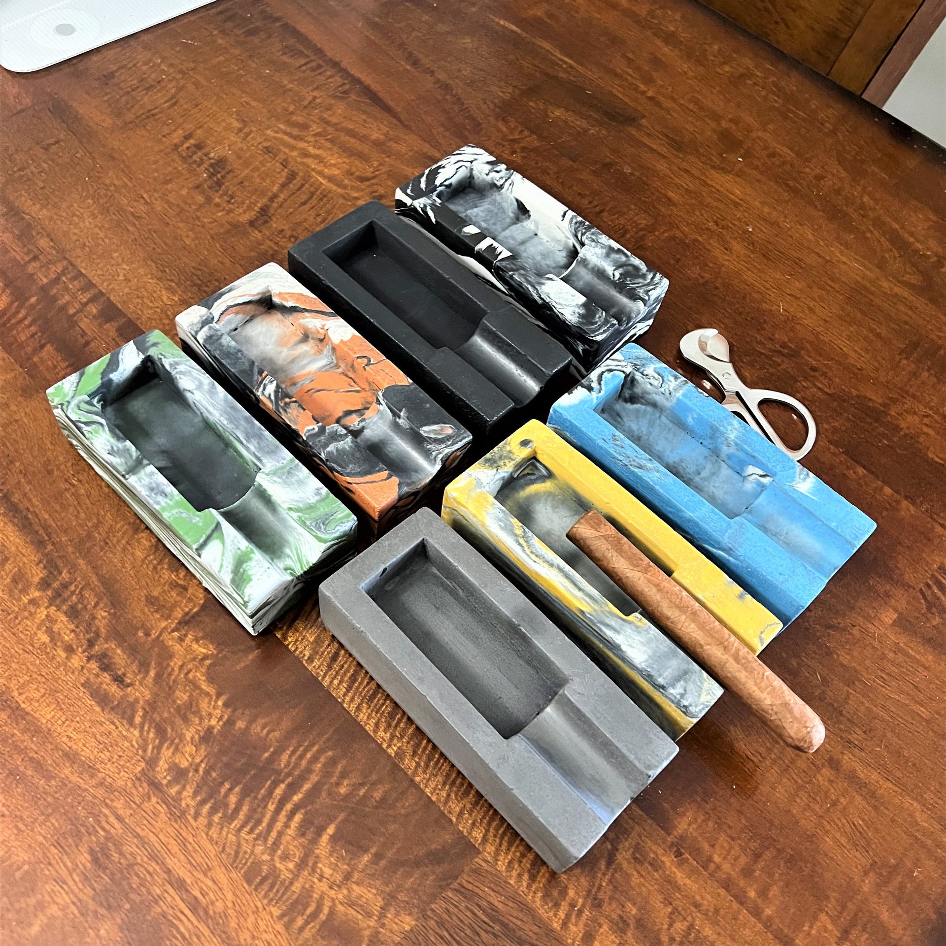 Hand-dyed and poured in small batches at our Jersey Shore workshop, our Single Concrete Cigar Ashtray is where craftsmanship meets character. The organic nature of concrete means each piece is one-of-a-kind, featuring a natural mix of colors, subtle air pockets, and raw texture that gives every ashtray its own personality.