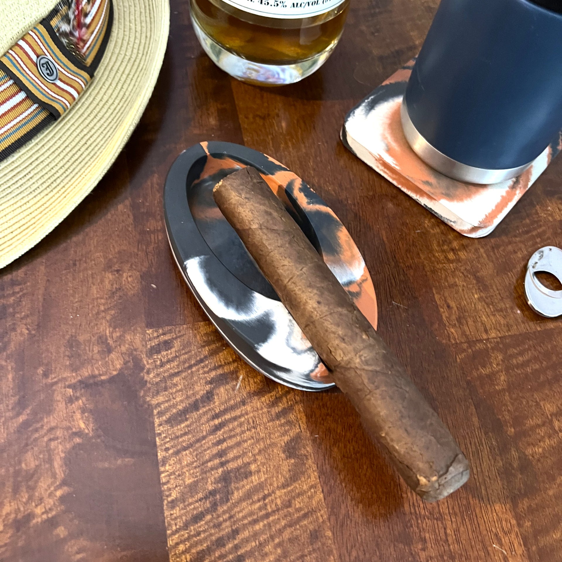 Small in size but big on style. Our oval cigar rest in terracotta marbled is the perfect companion for the cigar lover on the move. Whether you are lighting up at home, on the golf course or by the fire pit this compact cool design keeps your cigar steady in effortless style. Crafted for those who like their cigar accessories with a little edge and a lot of attitude.